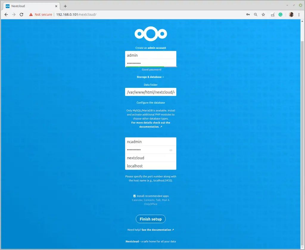 Step 7 – Complete Nextcloud Installation via GUI