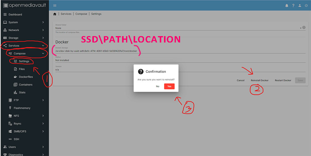 /var/lib/docker. This path will be on the OMV system disk.- If you don’t need to change anything, leave it as it is, docker is already installed.