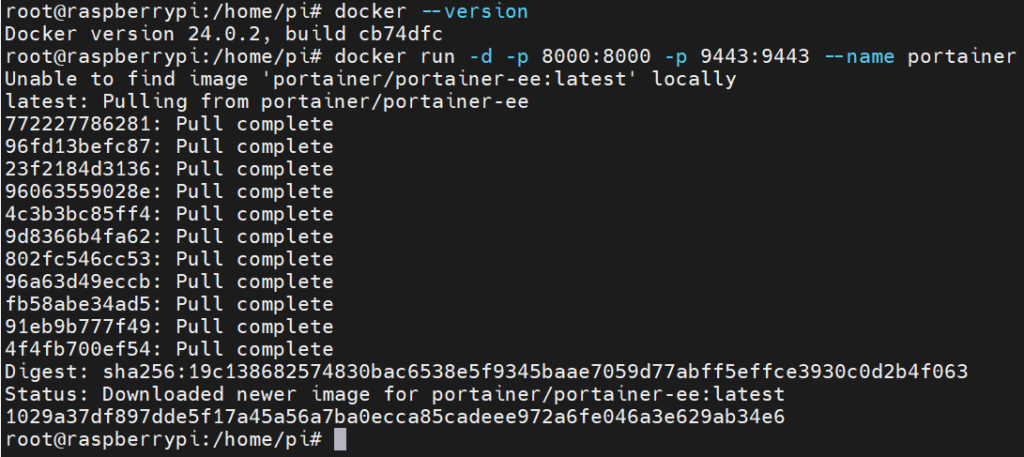 docker run -d -p 8000:8000 -p 9443:9443 --name portainer --restart=always -v /var/run/docker.sock:/var/run/docker.sock -v portainer_data:/data portainer/portainer-ee:latest