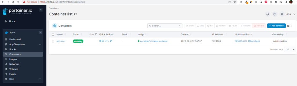 - Use the “Stop,” “Restart,” and “Remove” buttons to manage your containers as needed.