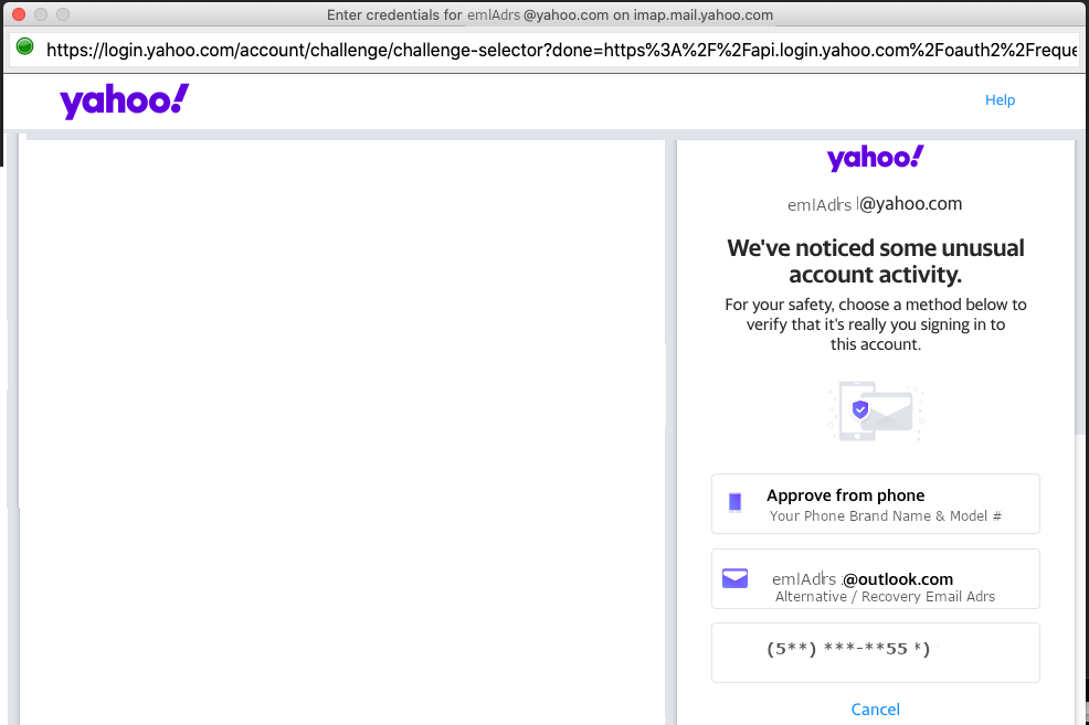 - Yahoo verifying user is authentic or not with 2FA type of verification, showing 2FA verification options