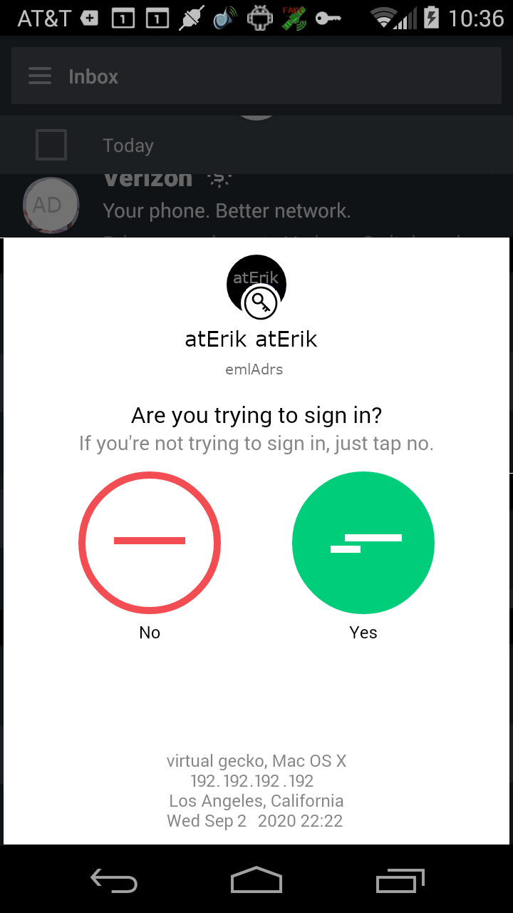 - Yahoo sending 2FA notification in their Yahoo Mail mobile app in user’s smartphone