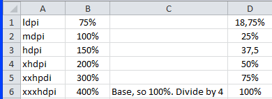 - xxxhdpi (extra-extra-extra-high) ~640dpi