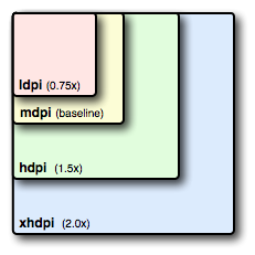 To create alternative bitmap drawables for different densities, you should follow the 3:4:6:8:12:16 scaling ratio between the six generalized densities. For example, if you have a bitmap drawable that’s 48×48 pixels for medium-density screens, all the different sizes should be: