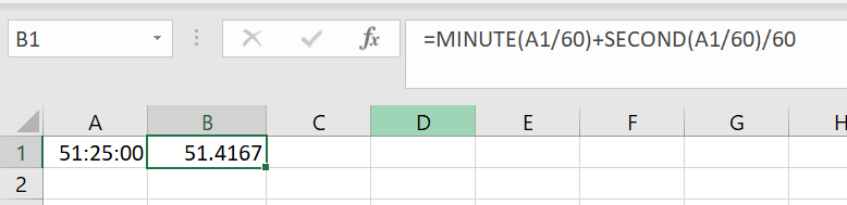 [Solved] Converting Times in Excel with minutes and seconds October 9, 2022 by Kirat [ad_1]Perhaps something like the following:=MINUTE(A1/60)+SECOND(A1/60)/60 More robustly perhaps,=HOUR(A1/60)*60+MINUTE(A1/60)+SECOND(A1/60)/60 6[ad_2]solved Converting Times in Excel with minutes and seconds
