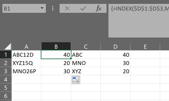 =INDEX($D$1:$D$3,MATCH(TRUE,ISNUMBER(FIND($C$1:$C$3,A1)),0))