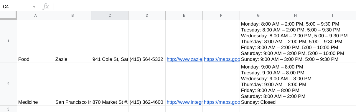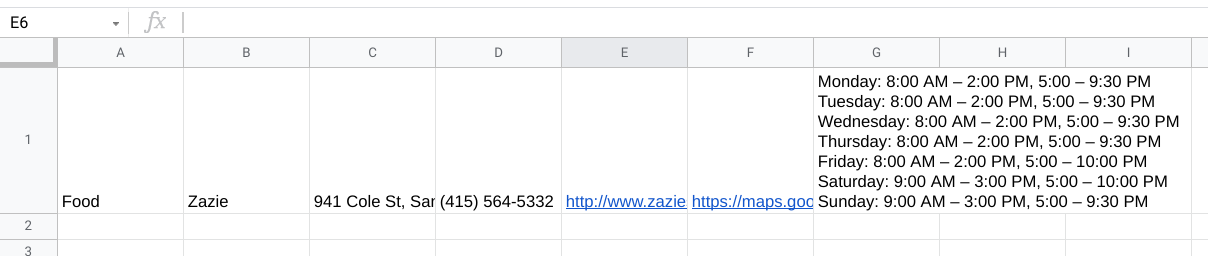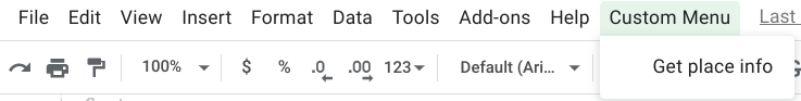 Also, executing the script only when the place information is not present in the sheet is not possible, you have to run the script to get the identifier of the place and compare it to the data in the Sheet. In your example, place.url can be used as identifier. The only thing you can do is to prevent the script from populating the Sheet.