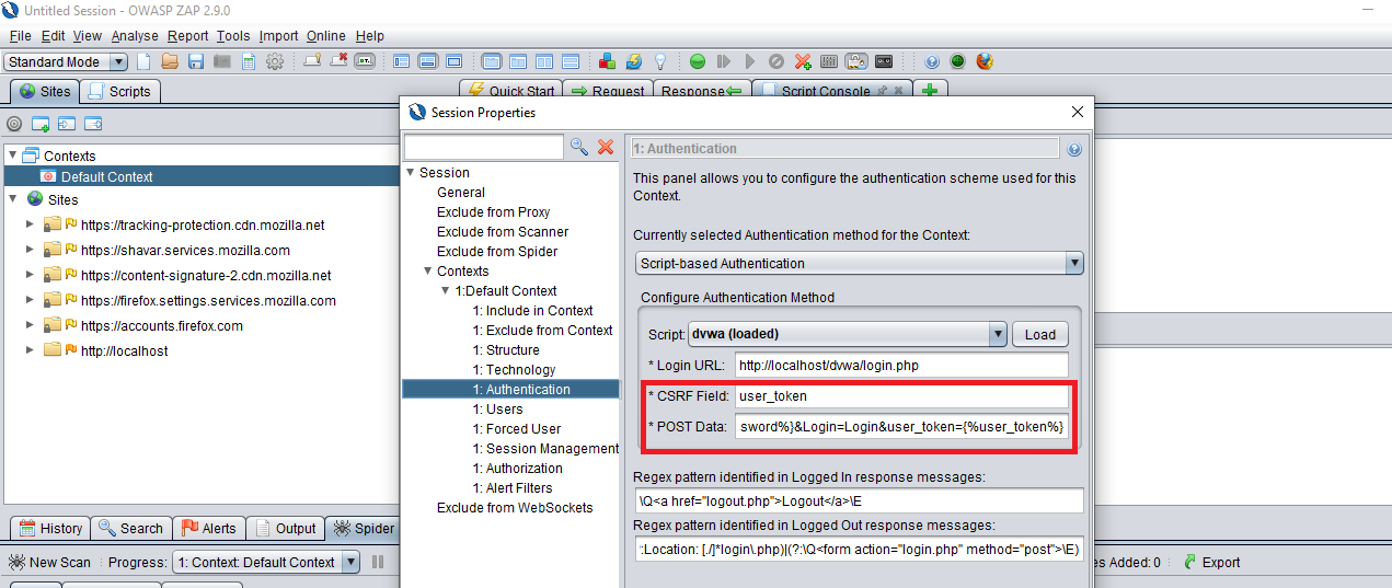 solved How to configure the user_token of Damn Vulnerable Web Application within CSRF field while Script based authentication using ZAP?