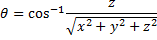 Conversion from your camera position (x,y,z): (Conversion between Spherical and Cartesian Coordinates Systems)