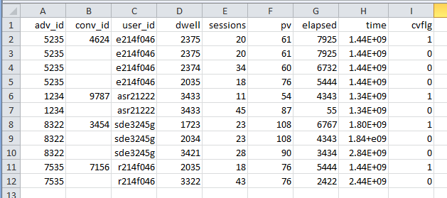 result.csv will then contain the following data when opened in Excel: