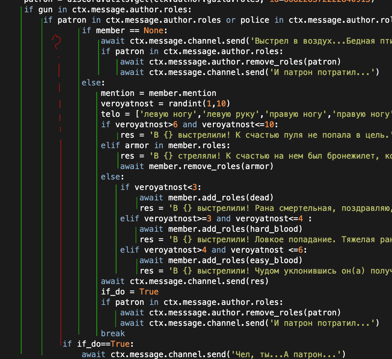 I diagrammed your code. See how the line that’s throwing an error doesn’t line up with any previous indentations? Python doesn’t know what to do with that, so it throws an error. In general, try and make your indentations always the same number of spaces, to avoid this.