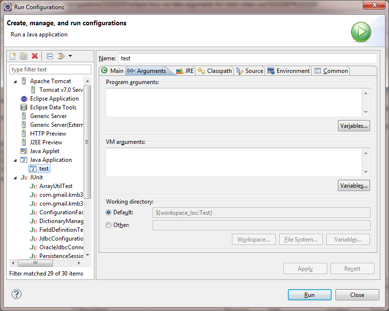 When debugging, you can pass command line arguments to your application like this: