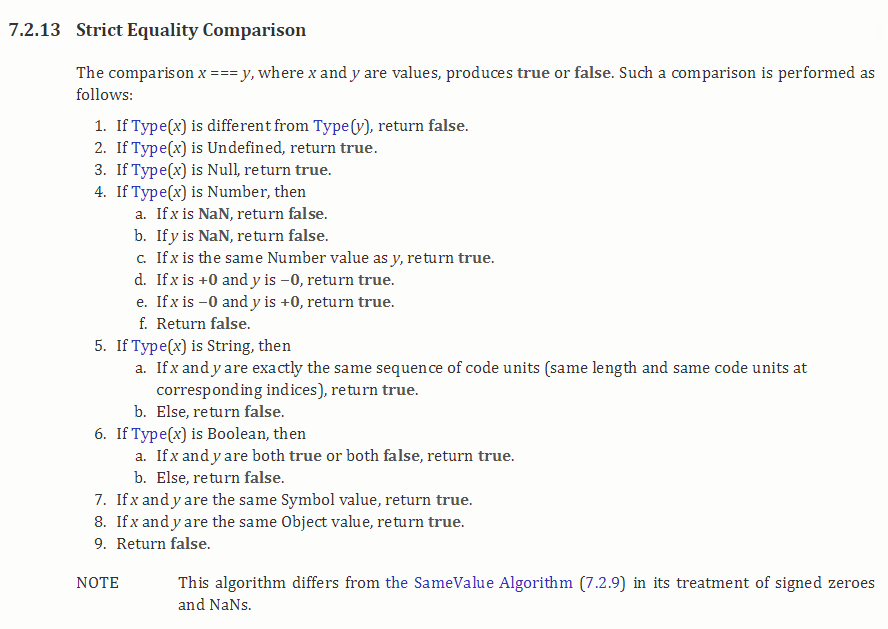 solved What is the definition of strict equality (===) in Javascript?